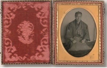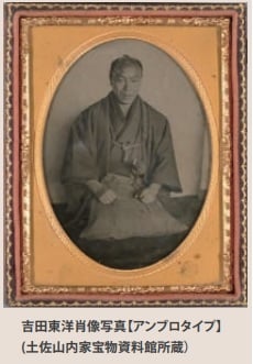 近年、ジョン万次郎が撮影したものと考えられる、写真原板の発見が相次いでいる。2014年には、長く所在が不明となっていた、幕末の土佐藩で重職にあった吉田東洋肖像写真の原板が、東洋のひ孫の家系宅で見つかり、新たに土佐山内家宝物資料館に収蔵された。筆者らの調査により、裏のガラス面に黒く樹脂を塗布し、表面の画像をネガ画像からポジ画像に反転させて鮮明に見せる技法の特徴が明らかとなり、万次郎が撮影した可能性が高いと同定できたアンブロタイプ写真である。刀を帯に結びつける下げ緒が内側から出ていることから、予め着物を左右逆に着たうえで刀も左右逆に指して撮影にのぞんでいるようである。文久元年(1861)1月29日の吉田東洋の日録には「晴 写真いたし候事 ・・・(後略)」と記されていることから、文久2 年(1862)4月8日に土佐で暗殺される約1年前、文久元年の江戸滞在中に万次郎によって撮影された吉田東洋の姿であろう。同郷の東洋とレンズ越しに向き合った万次郎の写真術とは、いったいどのようなものであったのであろうか。