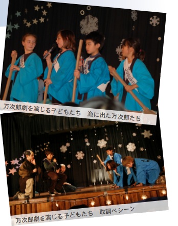 子どもたちは、私の厳しい練習も苦にせず、毎日喜んで取り組み、12月17日学芸会本番では、見事なチームワークを発揮し、立派に演じきりました。多くの観客からは「とても面白かった」「上手だった」といった反応がありましたし、何人かからは「万次郎はすごい人で大人として勉強になった」「子どもの成長ぶりがうかがえた」など、内容としても子どもの演技としても絶賛する声が多く、教師としてこの上ない喜びを感じました。