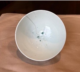 Two bowls obtained by Commodore Perry during Expedition to Japan showing no bottom makers mark and showing repaired cracks on both bowls with the Japanese Kintsugi method of repair. ペリー提督が日本遠征中に入手した2つの椀。底に職人の刻印(高台銘)はなく、どちらの椀も日本の金継ぎ技法でひび割れが修復されている Photo by Perry Russell